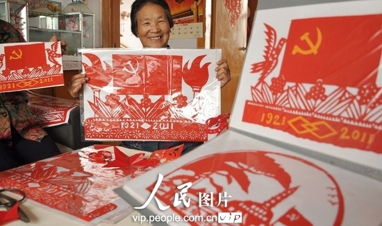【中国共产党90周年】山东沂源:90幅“红色”剪纸献礼建党90周年
