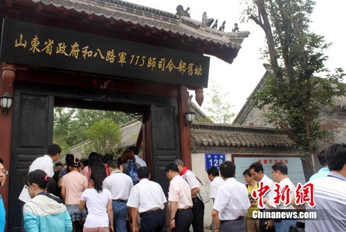 山东省政府旧址坐落于莒南县大店镇,原为大店庄氏家族的“旧堂”所在地,为四合院结构。1945年8月13日,山东省政府在此成立,这是中共领导下建立的首个省级政权。宁昊然 摄 19日,位于山东省莒南县庄氏庄园山东省政府成立旧址院落内,人流如织。中新网记者 吴歆 摄