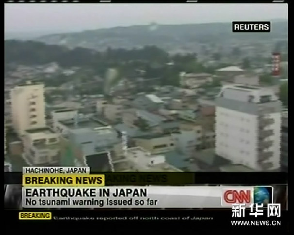 这张6月23日CNN电视台的电视截图显示,日本青森县八户市的街区在地震中抖动。新华社发