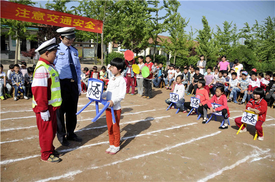 当日,山东省郯城县公安局交警大队在马陵山景区清泉小学开展了一场以“珍爱生命,注意交通安全”为主题的“交通安全情景剧”表演宣传活动,通过模拟交通场景与师生交流互动,宣传普及交通法规知识。据介绍,“交通安全情景剧”表演活动将巡回全县中小学校演出。
