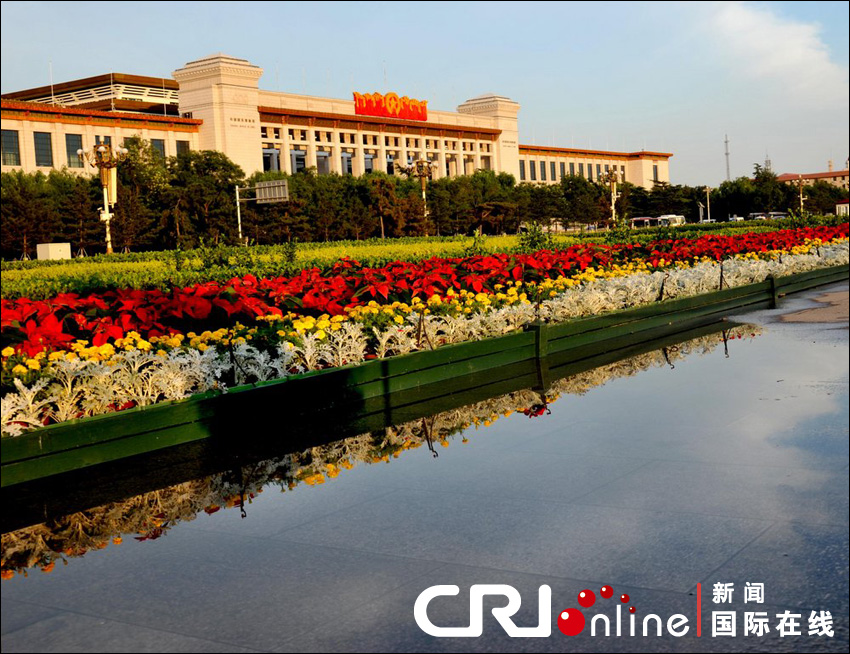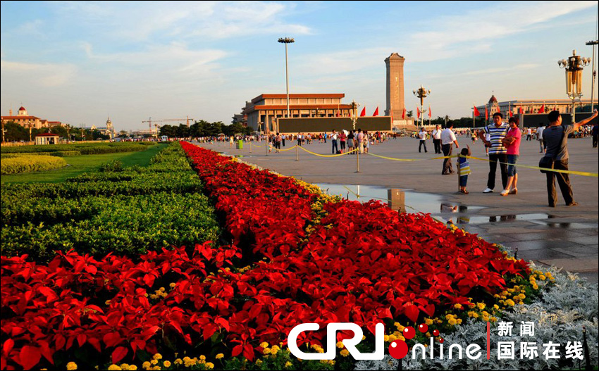 2011年6月26日,北京,在天安门广场大型花坛,呈现一派美景。