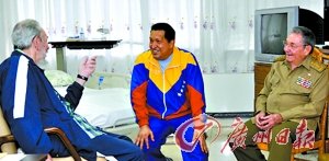 古共中央机关报《格拉玛报》6月18日报道,卡斯特罗和古巴国务委员会主席劳尔卡斯特罗17日前往医院探视查韦斯。