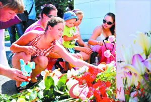在俄罗斯喀山,民众为死难者献上鲜花。