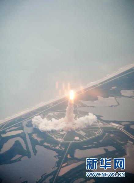 美国东部时间7月8日11时30分(北京时间23时30分)左右,“阿特兰蒂斯”号航天飞机在佛罗里达州的肯尼迪航天中心升空,执行美国航天飞机项目第135次、也是最后一次飞行。图为从航天飞机训练飞行器上拍到的“阿特兰蒂斯”号航天飞机升空时的情景。 新华社发(美国宇航局)