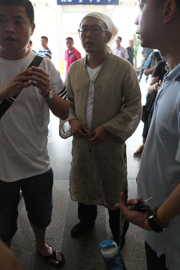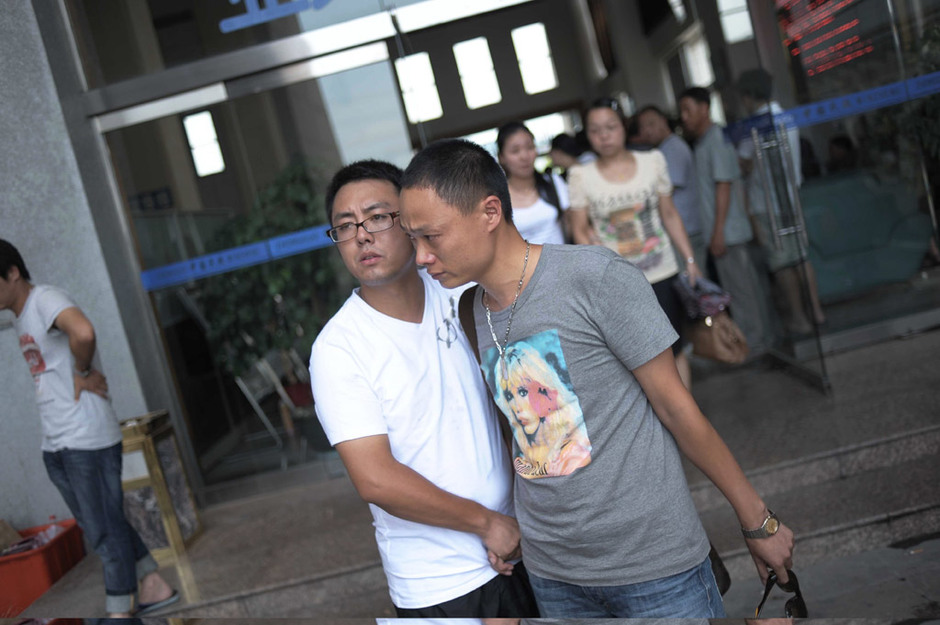 众亲友赶到殡仪馆,准备陪杨峰去认尸。3分钟后,他第一个走出太平间,和进去时的表情一样坚韧,但眼圈红红的。他隐忍的悲伤让亲友和媒体动容。