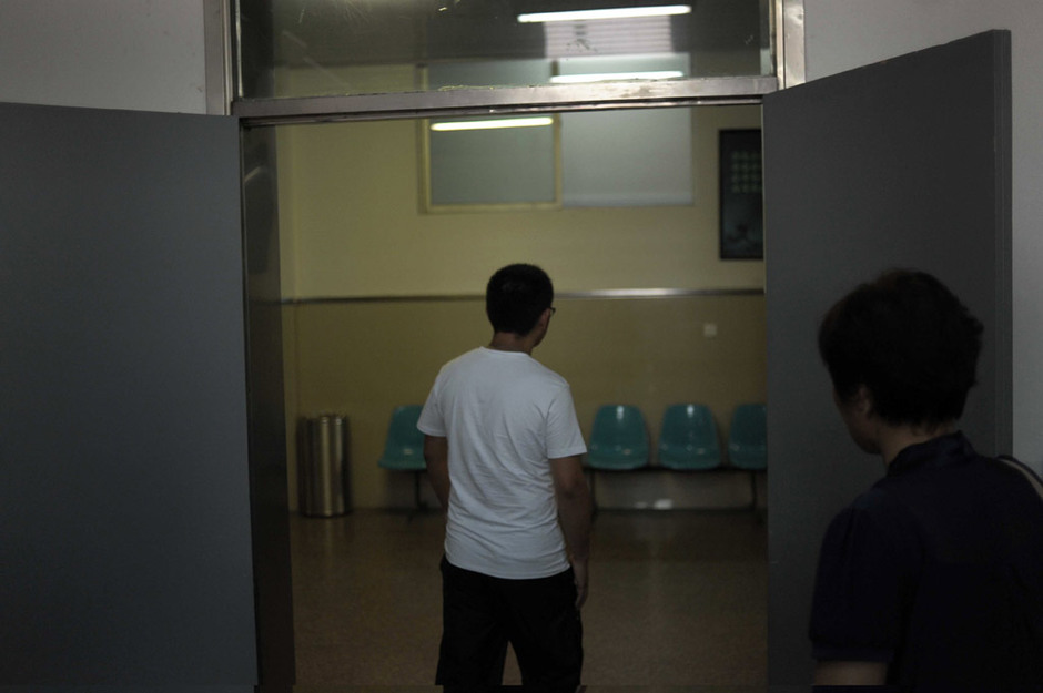 一直没有掉眼泪的杨峰此刻还是强忍悲痛,只是接电话的声音出奇得大,带着一夜大喊的嘶哑嗓音。挂了电话,他沉默片刻,下车后迅速跑向太平间,将其他亲友甩在脑后。