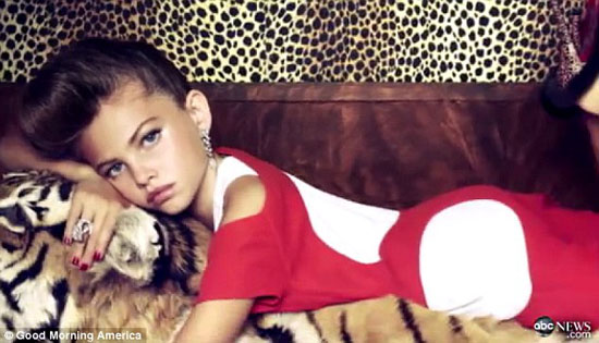 据外媒4日报道,法国版《Vogue Enfant》的封面上出现了一名新嫩模。和大家印象中天真单纯的孩子不同,封面上这位嫩模斜倚在豹纹枕头上,涂着红唇膏,穿深V上衣及三寸高跟鞋,表情冷酷地摆出诱人姿势,性感程度媲美成年模特儿。