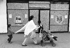 10日,伦敦骚乱逐渐平息,母亲带着孩子走在街上。