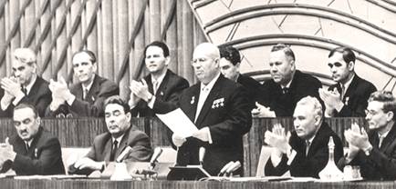 1956年赫鲁晓夫在苏共20大上作《关于个人崇拜及其后果》的报告(资料图片)