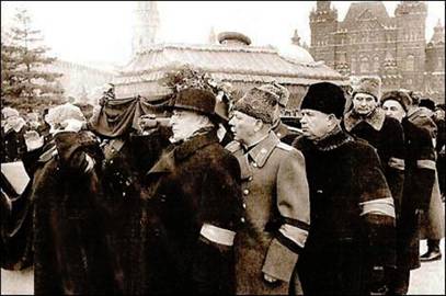 (左起)贝利亚、伏罗希洛夫、赫鲁晓夫和苏斯洛夫在斯大林的葬礼上(资料图片)
