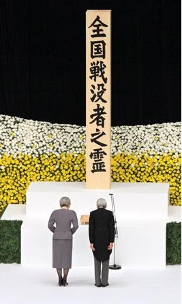 追悼仪式开始时,全体出席者向“战死者”默哀1分钟。日本天皇随后发表致辞,向310万名在战争中死去的日本人表示哀悼,并强调了日本必须走和平之路的重要性。