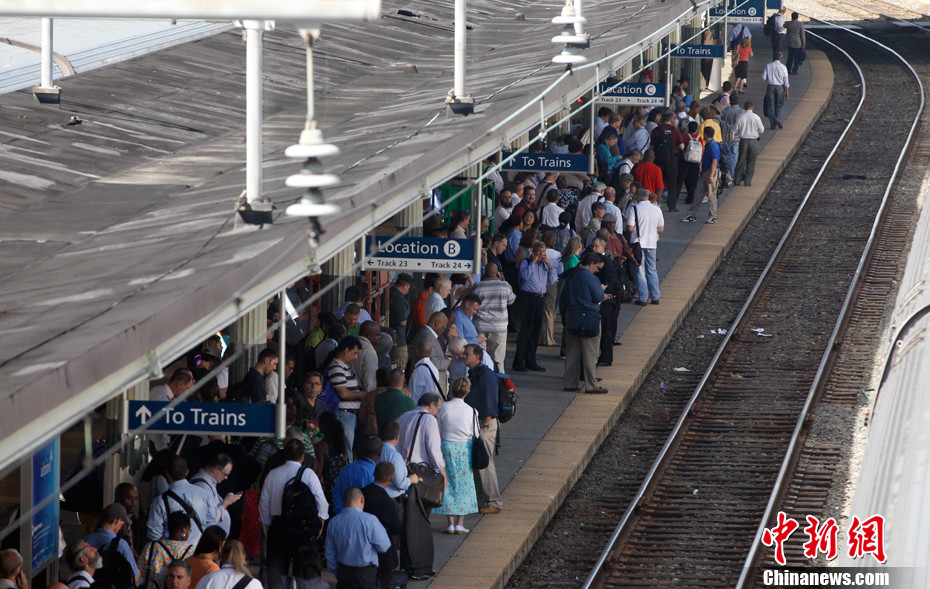 华盛顿时间23日下午(北京时间24日凌晨),美国弗吉尼亚地区发生里氏5.8级地震。地震发生时,弗吉尼亚周边的首都华盛顿、纽约等地均有明显震感。 白宫、五角大楼以及华盛顿所有的办公楼、医院、学校、博物馆紧急疏散。图为弗吉尼亚州地震发生后,华盛顿的火车站的一个站台上,乘客聚集等火车。