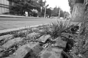 昨日,北师大校园内仍可见血迹。周岗峰 摄