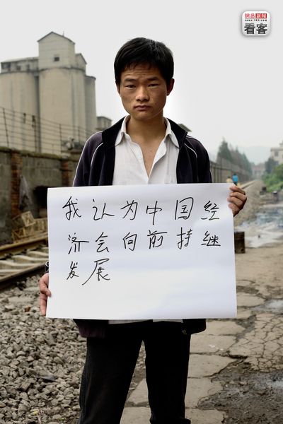 “我认为中国经济会向前持续发展。” 云南,Xu Ai Hua,19岁,高中毕业生。