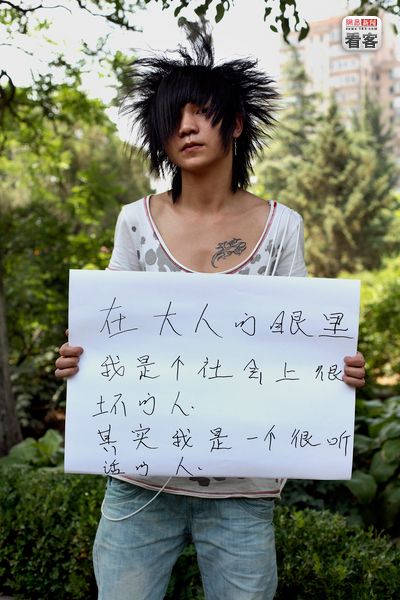 “在大人们眼里,我是个社会上很坏的人,其实我是一个很听话的人。” 甘肃,Chow Liang,17岁,理发店学徒,正在去另一个省看望父亲的途中。