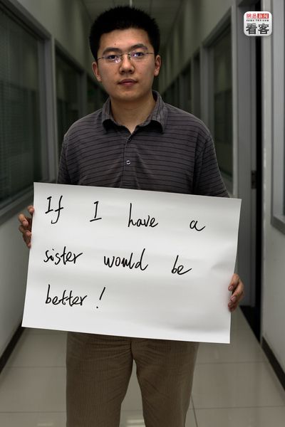“如果我有个妹妹就更好了。” 北京,Liu Gu,26岁,手机硬件设计师。
