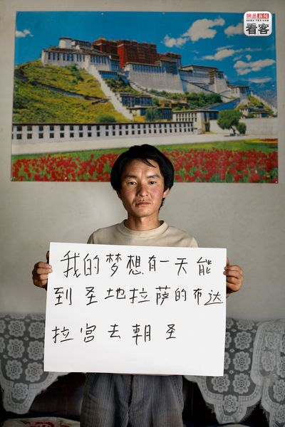“我的梦想有一天能到圣地拉萨的布达拉宫去朝圣。” 青海,Qiang Chow,25岁,建筑工人。