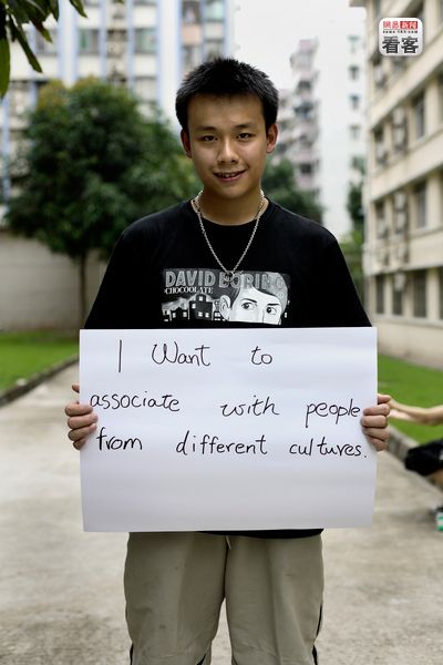“我想和不同文化的人交流。” 广东,Ray Chuang,20岁,经济贸易系学生。