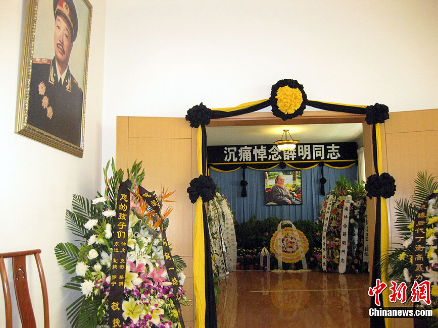 图为设在家中的薛明灵堂,贺龙元帅的照片也挂在灵堂内。淮黎霞摄影报道