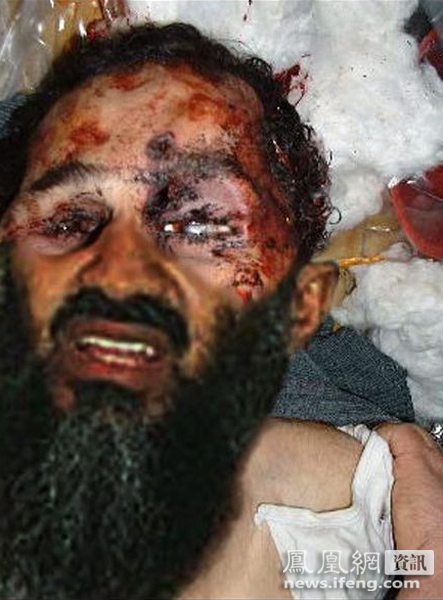 照片显示,死者的脸上有血,眉心附近有一个弹孔,能印证此前拉登被爆头的消息。