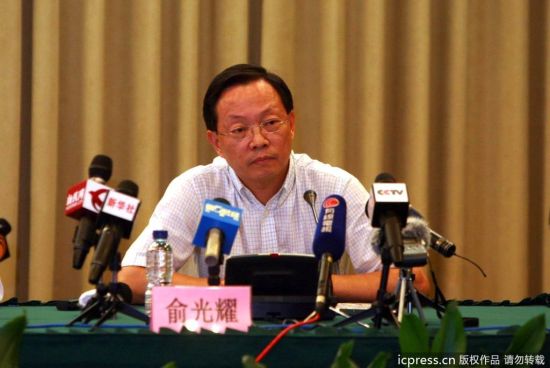 2011年9月27日20时30分,上海市政府新闻办召开地铁10号线追尾事故新闻通气会。申通地铁董事长俞光耀。图片来源:东方IC