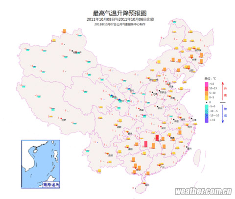 今天(10月8日)是国庆长假节后第一天,我国天气形势基本没有大的变化,南方大部气温继续回升,北方部分地区受冷空气影响气温有所下降,全国降雨范围较昨天略有扩大,四川盆地东部、黄淮等地的局部地区有雾。