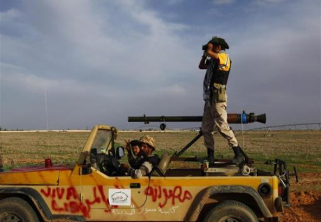 反卡扎菲士兵在苏尔特城西部巡逻。