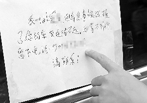 前日下午,记者在现场采访时,正值小学生们放学。三五成群的孩子好奇地趴上去看纸条。“哇,这人真好。课本里的故事原来还真有。”小学生们大都如此感慨。孩子们所说的这篇课文,题目叫《诚实和信任比金钱更重要》,讲的是在一个人开车把另一辆车的左反光镜撞碎了,就在被撞车的雨刷旁压了张纸条,写上自己的姓名和电话……