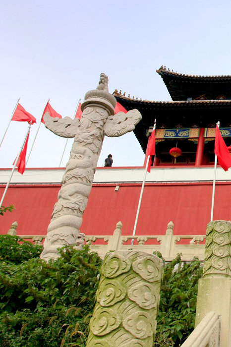 游客发现在华西村也能看到克隆的长城和天安门等著名景点。据当地负责人介绍,这些克隆景点让当地人在家门边感受到华夏河山的美丽,也成为华西村发展旅游业的亮点招牌。图为10月10日,江苏华西村山寨版的天安门城楼。