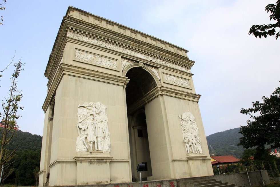 图为10月10日,江苏华西村山寨版的法国凯旋门。