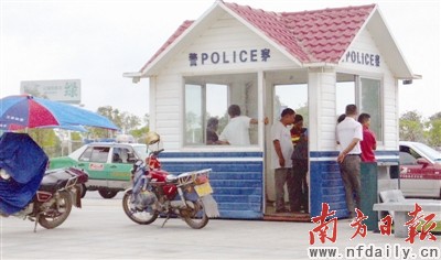 12日下午4时,接读者报料,记者来到武广高铁清远站站前广场,发现广场上唯一一个警察亭变成了赌博室,在广场门口接乘客的摩的、的士、小车司机挤在警察亭内,用扑克牌在赌博。记者看到,该警察亭内当时并没有警察驻点,司机光天化日之下在警亭内赌钱。13日上午,记者联系了该警亭上级公关机关,他们表示会尽快核实处理。