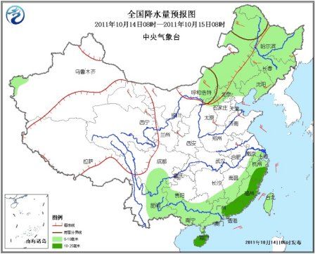 14日08时至15日08时,内蒙古中部及东北部有小雨(雪)或雨夹雪;内蒙古中东部、东北、华北北部、江南东南部、华南大部、西南地区东南部、台湾等地的部分地区有小雨(3~5毫米),其中,浙江南部、福建中东部、广东东部、海南等地的部分地区有中雨,局部大雨(15~30毫米)。西北地区东部、内蒙古、东北、华北、黄淮东部、江淮东部等地有4~6级风。南海中部偏东海域将有6~7级大风,“榕树”中心经过的附近海域风力可达8级。