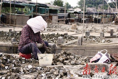 10月15日,在有“中国耗乡”之称的阳西程村镇,红光村委会主任谢家贵显得十分沮丧——10月份是生蚝的销售旺季,但这些天来收购的车辆反而比前几月骤降了2/3。