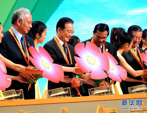 上午9时,温家宝与马来西亚总理纳吉布、柬埔寨首相洪森等东盟10国代表团团长及东盟秘书长素林一起步入会场,受到在场来宾热烈欢迎。
