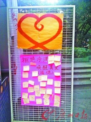 在中山纪念堂的“西关小屋”,市民们不仅用文字表达了对“拒绝冷漠 唤醒真爱”行动的支持,还有小朋友拿起画笔表达了心中的看法。记者看到画面上画了蜡烛以及闪亮的烛光,旁边还配了“加油”二字,希望小悦悦的爸爸妈妈能继续坚强地活下去。