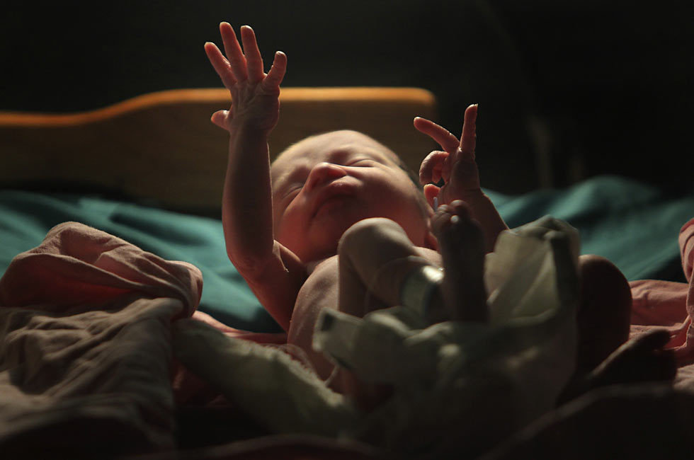 10月21日,在洪都拉斯首都特古西加尔巴的一家医院,一名新生儿伸出双手。据洪都拉斯卫生部门的数据,每年有约220,000名婴儿在洪都拉斯出生。新华社发