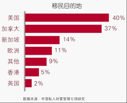 美国和加拿大是最受青睐的移民目的地国家,两者的占比之和达到77%。