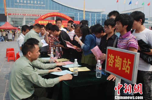 10月22日,在广西桂林市甲天下广场,适龄青年正在征兵咨询点进行咨询。中新社发 赵琳露 摄