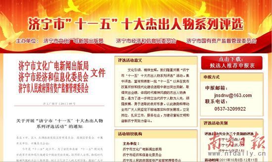 南方日报讯(记者/丁建庭)今日,本报独家报道了《山东济宁十大杰出人物评选“一元一票”被指圈钱》,引发社会热议。下午,记者登录济宁新闻网发现,此次评选活动的投票页面已经关闭,而距此前规定的投票截止日期还有一天多。