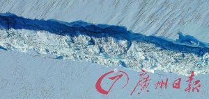 南极冰川惊现的裂缝。