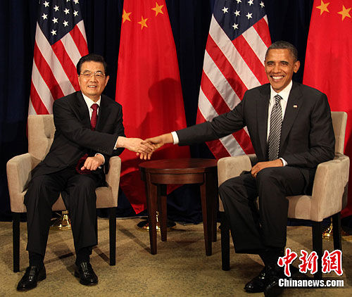 11月12日,国家主席胡锦涛在美国夏威夷会见美国总统奥巴马。