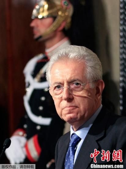 当地时间11月13日,罗马,意大利新总理马里奥-蒙蒂与媒体记者见面。