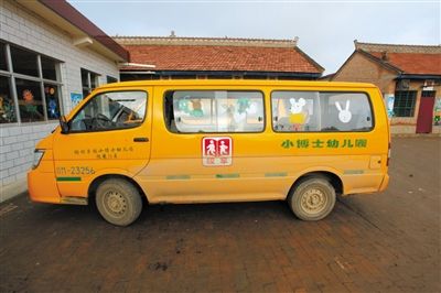昨日,一辆校车停在小博士幼儿园的院子里。