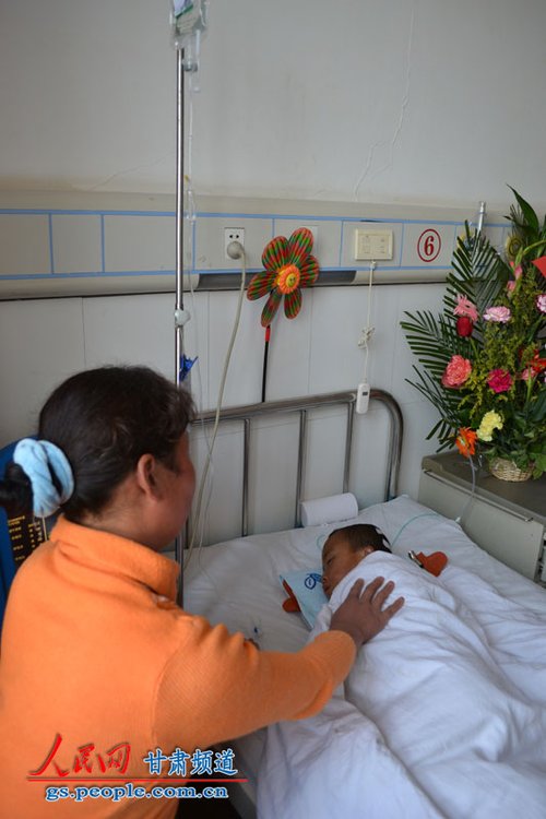 庆阳市人民医院的大夫正在对一名受伤幼儿进行检查