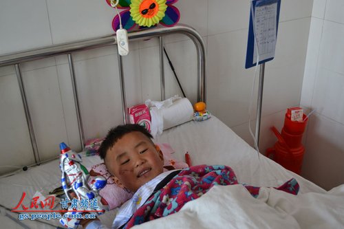 一名在事故中受伤的儿童经过救治,情况逐步好转,已经可以开心的玩玩具了