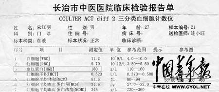 11月9日,中国青年报刊发题为《宋江明求职验血记》的报道:山西长治籍考生宋江明在参加山西省行政机关2011年录用公务员考试中,以笔试第一、面试第一、总分第一的成绩,成为所报考岗位——长治市环保局“科员2”——唯一一名进入体检环节的考生;但他在参加招考部门组织的体检后被告知,因一项名叫“血红蛋白”的指标不达标,所以体检不合格。此后,宋江明自行前往3家医院进行了4次验血,此前被检出低于相关标准的“血红蛋白”指标都符合公务员录用的相关规定。