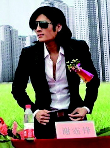黑色西服配白色衬衫,一头乌黑的中分长发,戴着标志性的墨镜……昨日有网友在论坛和微博报料,“谢霆锋”在贺州参加了某有限公司的项目开工仪式,但山寨谢霆锋的事实让所有期待的观众的热情一下子干瘪了下来,失望和愤怒交集在一起,被忽悠了!