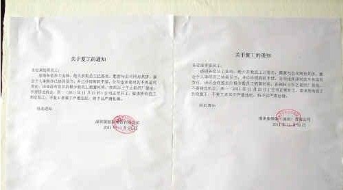 深圳黛丽斯张贴通知,要求员工复工。