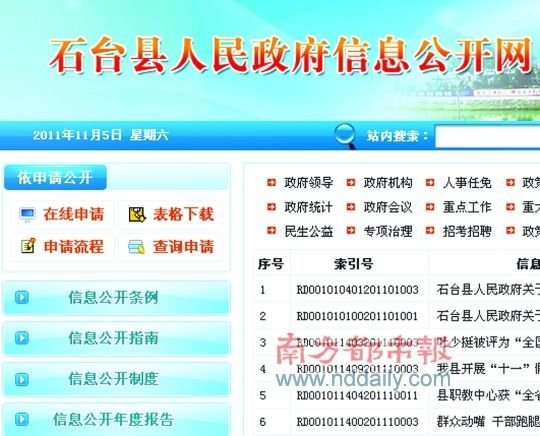 11月23日,网友“带头大哥”在石台县当地论坛发布消息称,石台县政府的信息公开网,首页所有的东西竟然是图片截图做成的(点击右键属性,就能看到jpg格式的链接),点都点不开,“这样的信息公开网能叫公开吗?不就是面子工程,这样的做假网站,不如不要。”