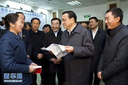 11月25日,中共中央政治局常委、国务院副总理李克强在河北省廊坊市实地了解保障性安居工程建设工作各项政策措施落实情况和成效。